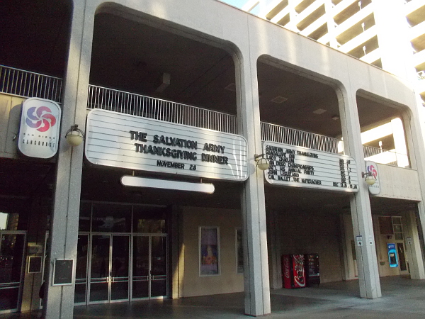 The City Ballet will perform The Nutcracker this year at the Spreckels Theatre.A nutcracker guards the lobby of the Westgate Hotel.Beautiful holiday gifts are beginning to appear in some downtown shop windows.One of several elegant Christmas trees now in the lobby of The Sofia Hotel.The Salvation Army will be serving Thanksgiving dinner to the less fortunate again at Golden Hall.Buon Natale!