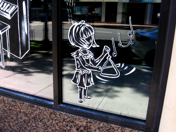 In the past few days musicians have been painted on the windows of the 1928 Hamilton Fine Foods Building at the corner of Seventh Avenue and C Street. I noticed today that the stylish artwork is nearly finished. There are images of musicians that seem be be performing jazz, blues and even some country.