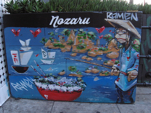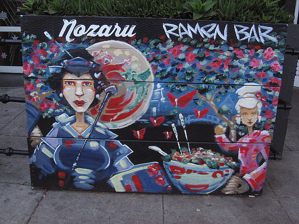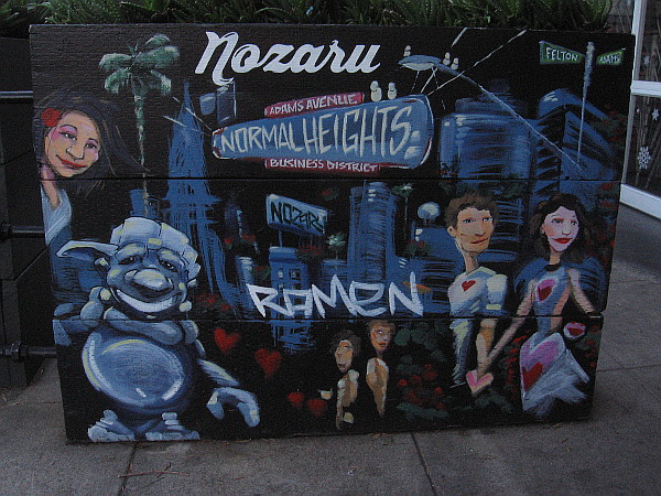 I love this cool artwork out on the sidewalk in front of Nozaru Ramen Bar in Normal Heights!