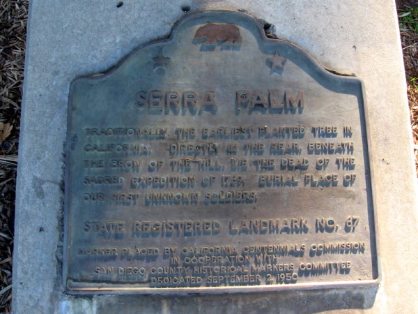 The Serra Palm was planted in 1769 by Padre Junípero Serra, and marked the beginning of El Camino Real.