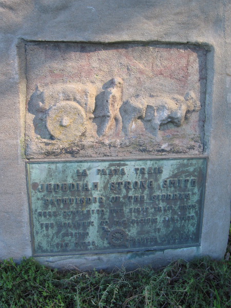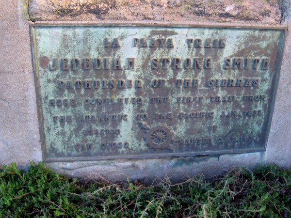According to Wikipedia: “In 1934, six commemorative terra cotta plaques were placed along the length of the trail by the local chapter of the Daughters of the American Revolution and other groups, based on a relief designed by sculptor Rose M. Hanks. The original six were located at Mission San Diego de Alcala; at the foot of Presidio Hill in Old Town; near the intersection of Rosecrans St. and Midway Blvd. in the Midway area; at the corner of Rosecrans and Lytton streets in Loma Portal, across from the Naval Training Center San Diego golf course; at the corner of Rosecrans and Byron streets in Roseville; and at the site of the fuel depot at Naval Base Point Loma…”