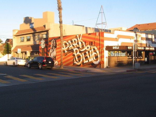 I recently noticed a new spray painted mural in University Heights on the south wall of Park Boulevard Liquor and Deli. It has replaced another mural which I posted several years ago here.