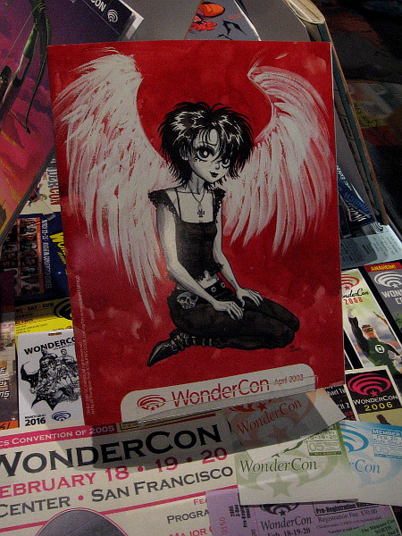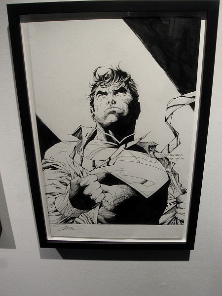 Sense of Wonder: The Art of WonderCon Anaheim features a gallery full of original artwork used for the covers of WonderCon program books. Many top comic artists have created these covers over the years, and visitors this evening were admiring sketches, thumbnails and finished pieces by the likes of Jim Lee, Dan Jurgens, and many others.