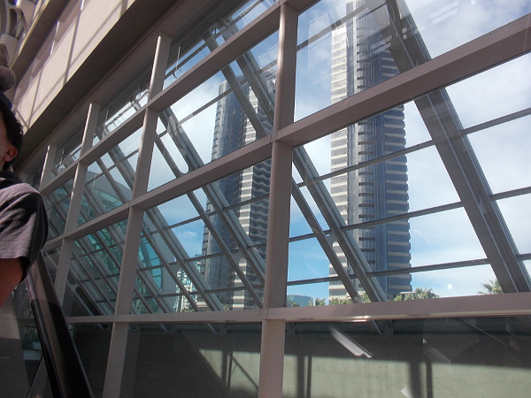 The problem is, as we turned each new corner, my eyes were always busy looking for photographic opportunities and I took few notes. I was dazzled by the sheer beauty of the public spaces. I can’t imagine a more beautiful convention center exists anywhere in the world. There is abundant sunlight, complex, jewel-like patterns of glass, and stunning views of San Diego Bay and downtown.