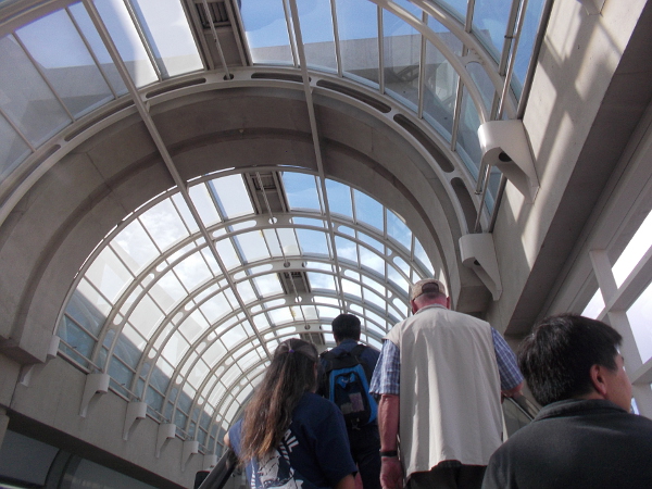The problem is, as we turned each new corner, my eyes were always busy looking for photographic opportunities and I took few notes. I was dazzled by the sheer beauty of the public spaces. I can’t imagine a more beautiful convention center exists anywhere in the world. There is abundant sunlight, complex, jewel-like patterns of glass, and stunning views of San Diego Bay and downtown.