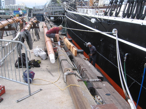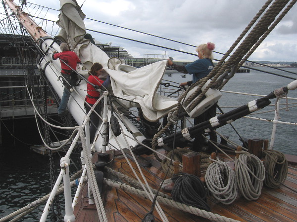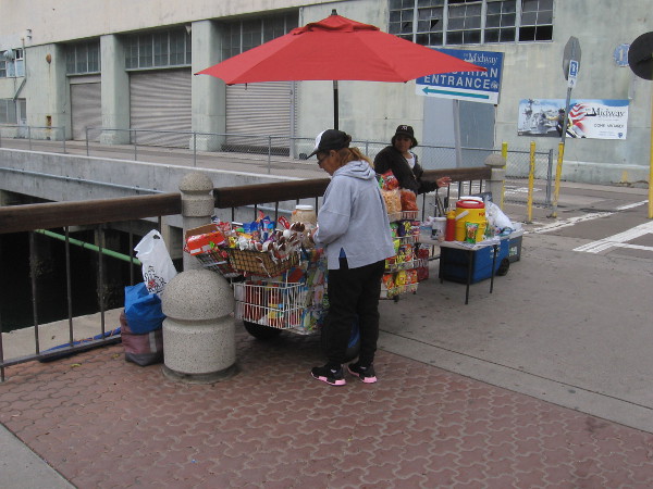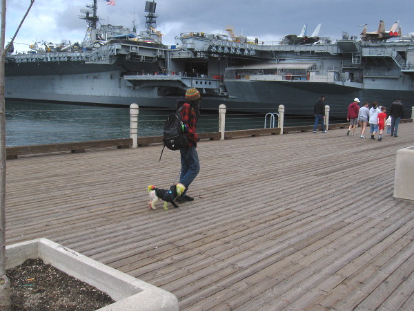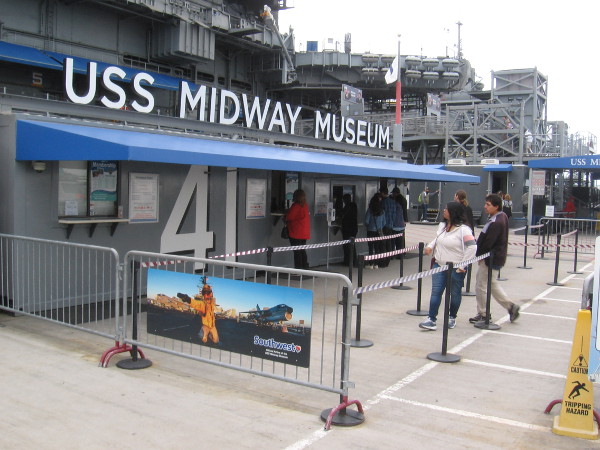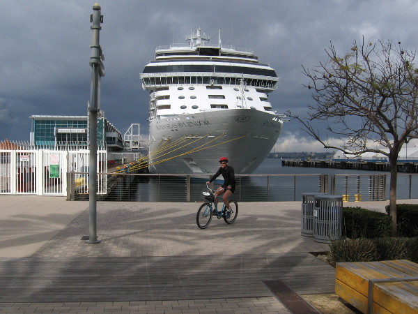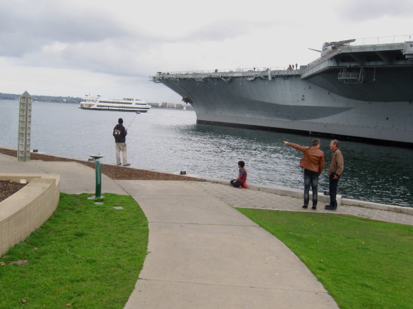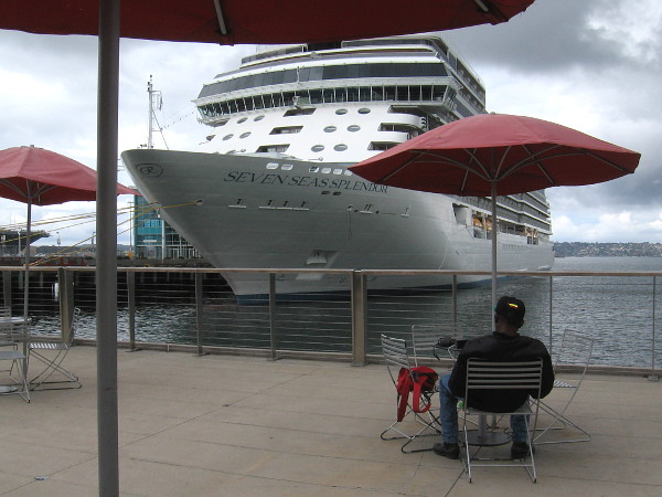 I walked along downtown’s waterfront today, wondering what I might see. A cruise ship was docked at the Broadway Pier, but I saw no passengers. I noticed that the Portside Pier construction is well along. It’s Sunday, so lots of volunteers were busy at the Maritime Museum, but I was one of very few visitors. The usual lines at the USS Midway ticket booth were practically nonexistent.