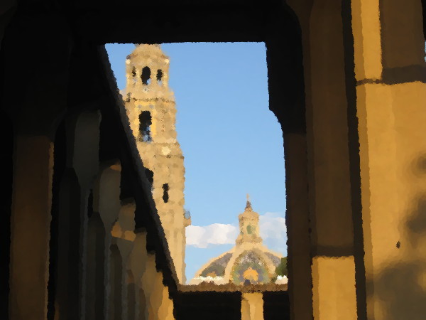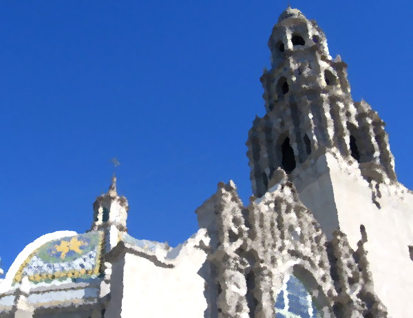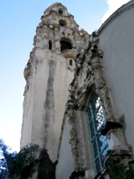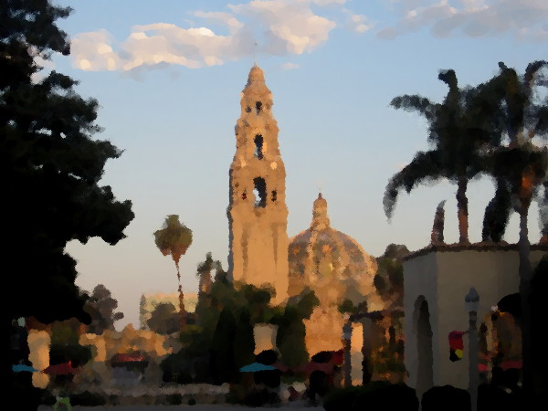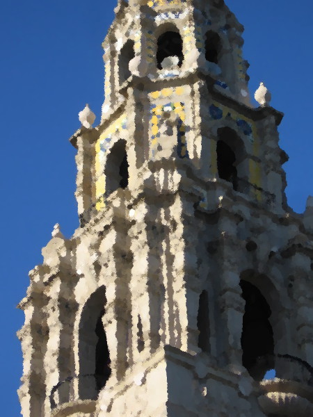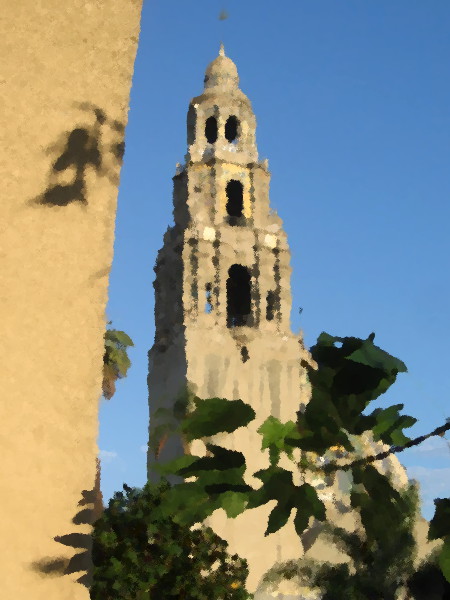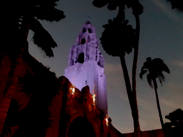 I’ve taken so many photos of the California Tower over the years, from different angles and during different occasions, that I thought I might have a little fun. Using the GIMP graphic software’s Oilify filter, I’ve transformed some of my images into digital oil paintings!