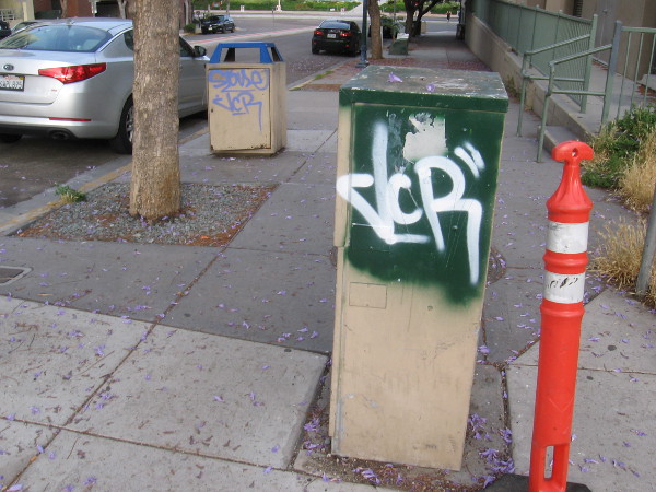 The friendly guys painting over the illegal graffiti indicated that because the streets are emptier than usual, those who go about tagging buildings, walls, signs and other targets have become more active, as there are fewer eyes outside who might witness their activity. San Diego has had a substantial increase in the homeless population in recent years, and unfortunately that means gang members who move about the city selling meth and other drugs. I might be a bit naive on such matters, but I reckon at least some of this vandalism is the marking of territory.