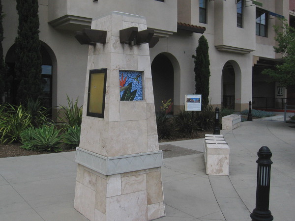 A lot of public art has already been added to one section of S. Santa Fe Avenue, including many of these stained glass panels in new information kiosks. A once blighted part of downtown Vista is being revitalized!
