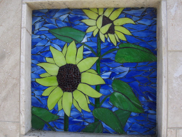 I took photos of some finished panels as I walked around today. I saw depictions of Vista’s flowers, birds, natural landscapes, and historic places!