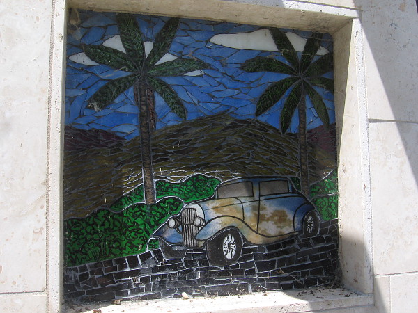 A lot of public art has already been added to one section of S. Santa Fe Avenue, including many of these stained glass panels in new information kiosks. A once blighted part of downtown Vista is being revitalized!