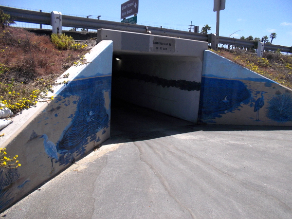 That tunnel is home of a long, very cool mural that depicts life above the water and beneath it.