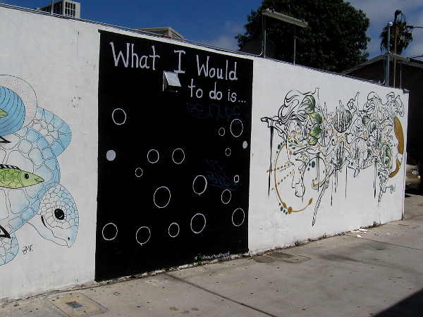 This afternoon I walked down University Avenue between I-805 and I-15. I’d learned a new mural is being painted in the City Heights’ outdoor “drive-through” art gallery!