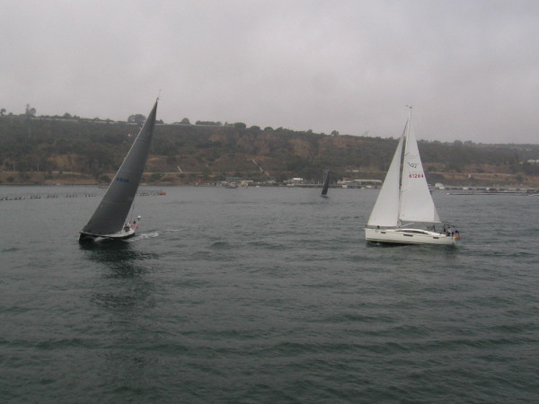 It was hazy and gray as we cruised back into San Diego Bay at the end of our whale watching trip. Many sailboats were heading out to the ocean.