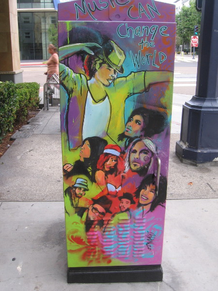 Check out this extraordinary street art in East Village! All four sides of an electrical box have been colorfully painted with the images of legendary musicians. And the accompanying messages are inspirational.