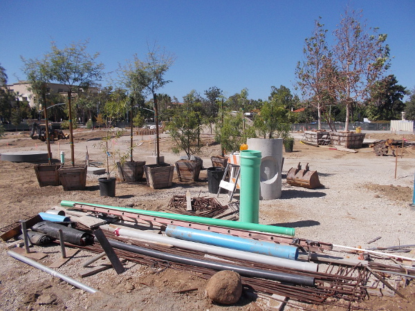 Today, as I walked along the west side of this new park, I took some photos over the construction fence. I saw that many native trees have been planted!