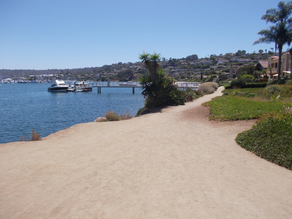 As other walkers and bicyclists passed me, I looked out at boats in the La Playa Anchorage behind Shelter Island, at people and dogs enjoying several small beaches, and the yards of handsome houses with a view of the water.