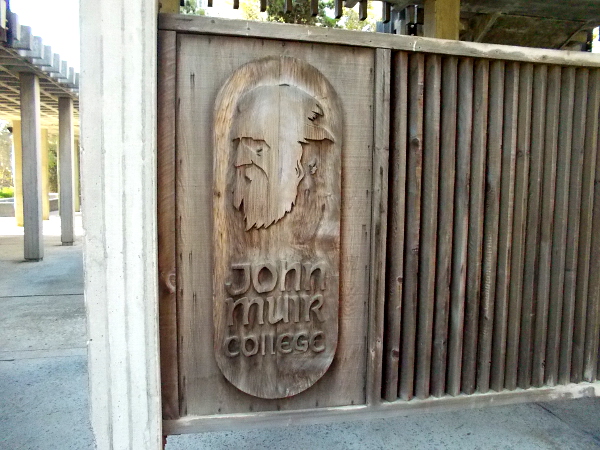 Carved likeness of a famous naturalist at UCSD’s John Muir College. The college motto is Celebrating the Independent Spirit.