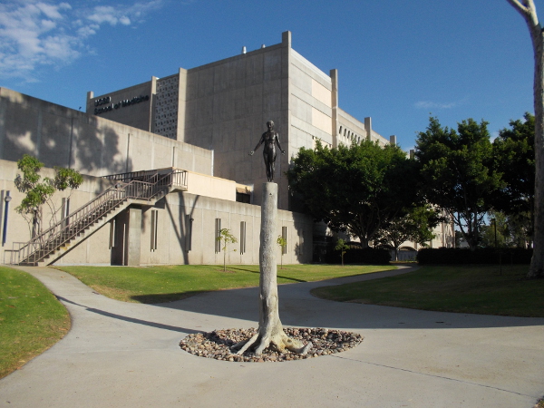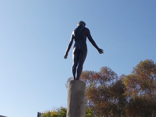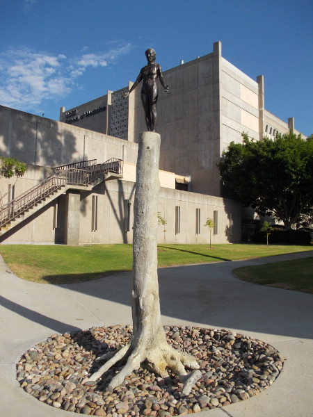There’s an unusual sculpture at UC San Diego rising high in the air between the Medical Teaching Facility and the Basic Sciences Building. I say it’s unusual because it doesn’t feature a “usual” depiction of the human form and I’m not sure how it affects me.