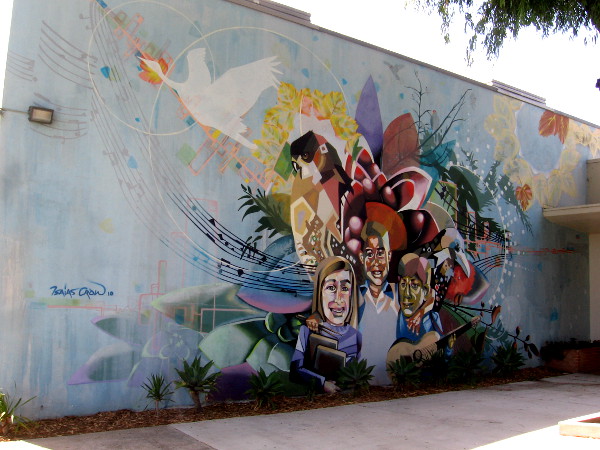 Yesterday I encountered one of my very favorite murals in San Diego. It lives at Pacific Beach Elementary School. I say this mural lives, because the artwork is vibrant, inspiring and has genuine soul. I couldn’t take my eyes off it!