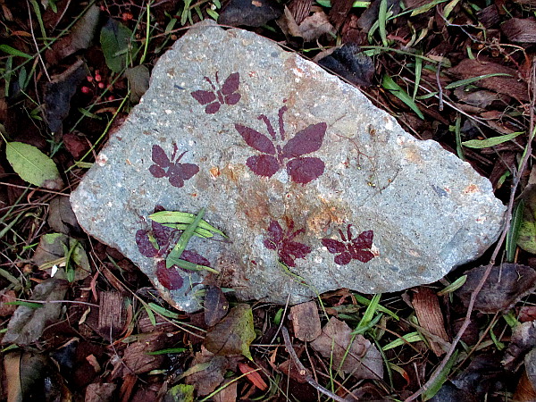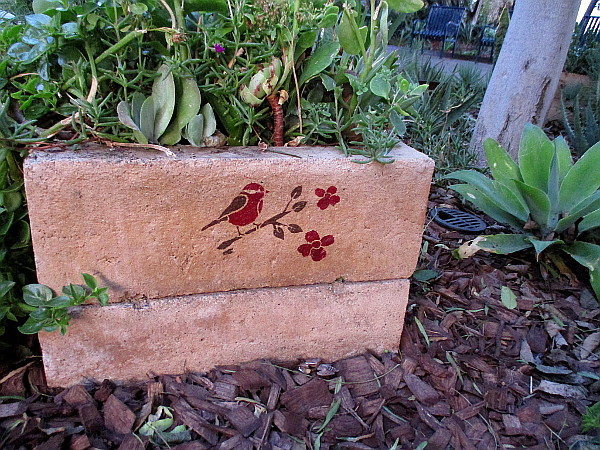 I learned from Joe Ciavarella of Friends of Tweet Street Park that the beautiful butterflies–and birds, flowers and dragonflies–you see in my photos were painted on planters and stones recently by Victoria Villavicencio, who periodically visits Cortez Hill.
