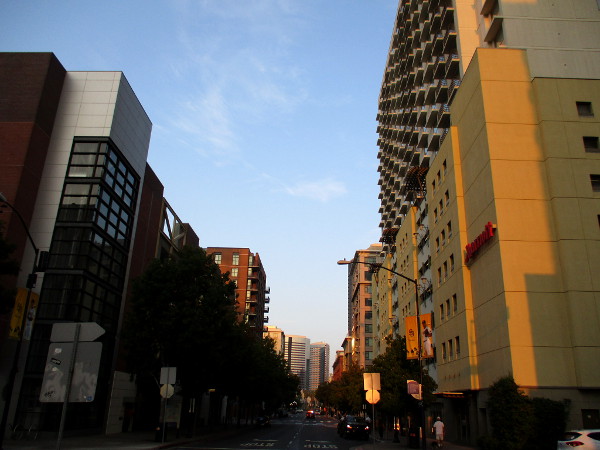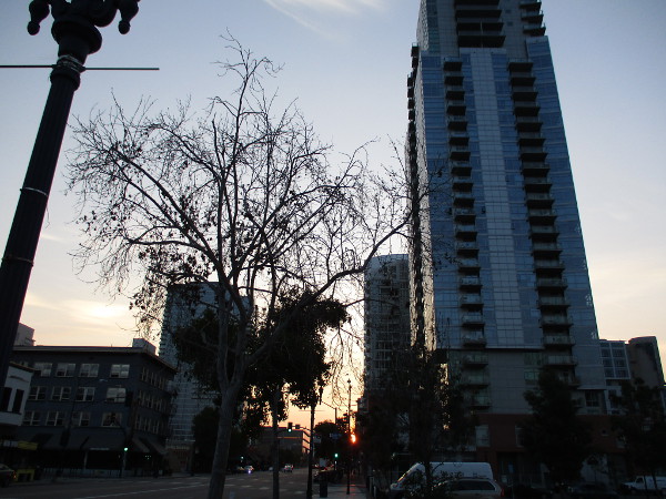 The sun was newly risen this morning as I walked through downtown. I meandered through East Village and the Gaslamp Quarter, and eventually ended up at the Convention Center trolley station.