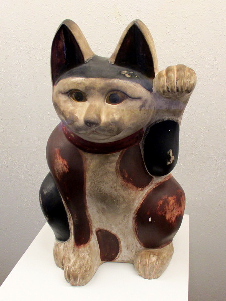 The Mingei International Museum has a collection of over 150 maneki neko. Maneki neko are Japanese beckoning cats, made of clay, porcelain, metal, rock, wood or other material. They are talismans of good fortune in Japan.