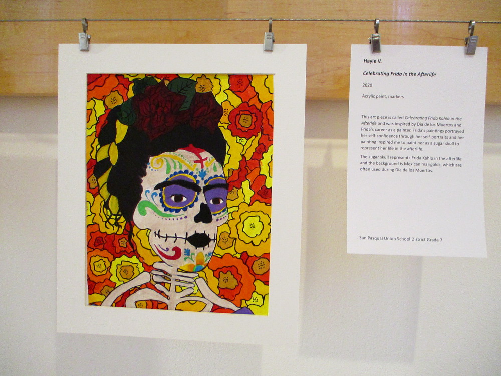 As you can see, another gallery at the Museum contains even more artwork, including a very cool car with a traditional Mexican altar in its trunk and a large Frido Kahlo Day of the Dead Altar. A third gallery features Frida-related artwork by local school students!