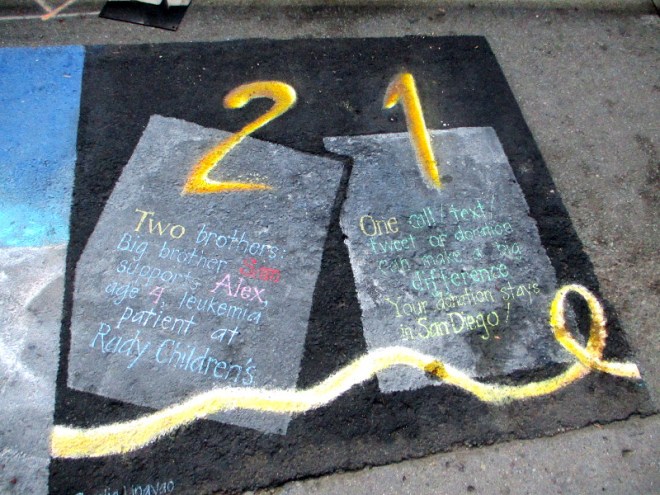 If you are inspired by the story of two young brothers told by this chalk art, then please visit the Rady Children’s Hospital donation page by clicking here. You can also volunteer!