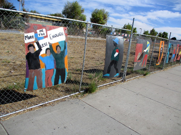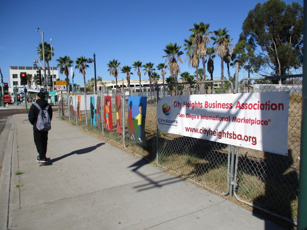 This fence beside a vacant lot is becoming a sort of temporary outdoor art gallery. You can find this colorful artwork on University Avenue, just east of Interstate 15.