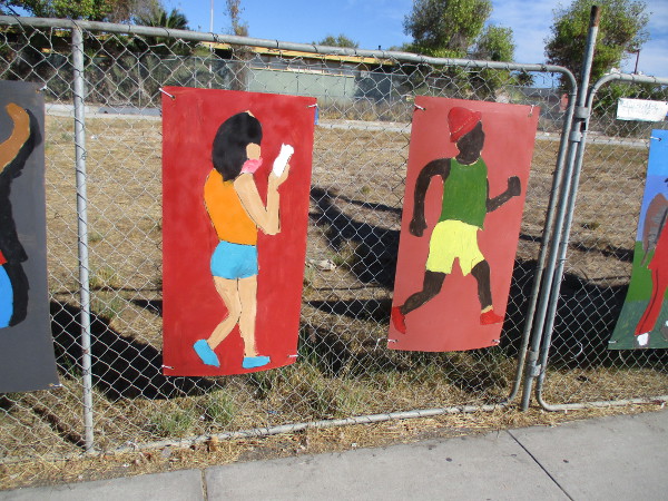 I’ve learned the paintings are by artist Jim Bliesner, who has contributed his heart and talent to projects around San Diego over the course of many years. With strokes of his brush he has magically gathered many neighbors together!