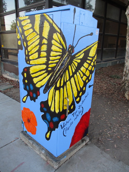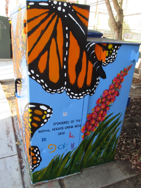 Painted might be the perfect word, because all of these huge butterflies were painted this year. I see this very colorful street art is sponsored by Normal Heights Urban Arts.