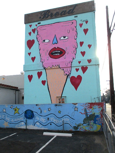 The first five photos are of two murals on the northwest side of Bread & Salt’s unique old bakery building. You might notice the artist signature Panca, who has exhibited at Bread & Salt.