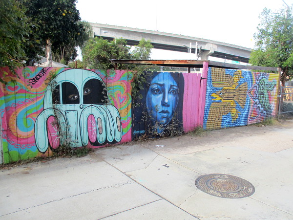 During a walk in Logan Heights a couple weekends ago I came upon these very cool murals northeast of Chicano Park, on the other side of Interstate 5.