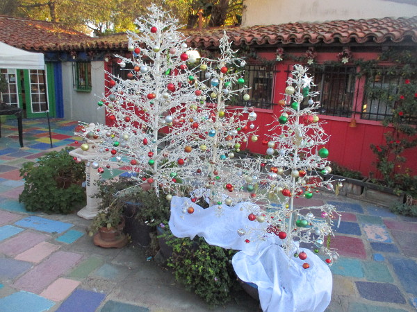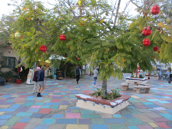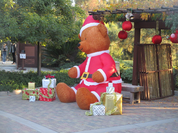 A few visitors were dressed for the occasion–I even saw Santa Grinch skating about in the Plaza de Panama! I also saw good old Santa wearing a face mask driving his sleigh between the plaza and Organ Pavilion; a big Santa Bear at the Japanese Friendship Garden; and lights, Christmas trees and ornaments in the Spanish Village Art Center.