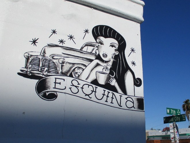 Check out these three cool works of art painted on the outside of Esquina Vintage and Coffee in National City!
