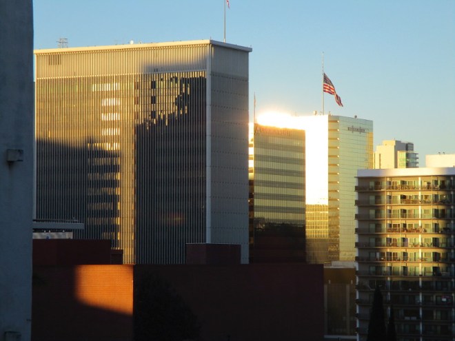 Early sunlight was reflecting brightly from downtown’s many buildings. Surrounded by fascinating forms, shadows and reflections, I took this series of photographs…