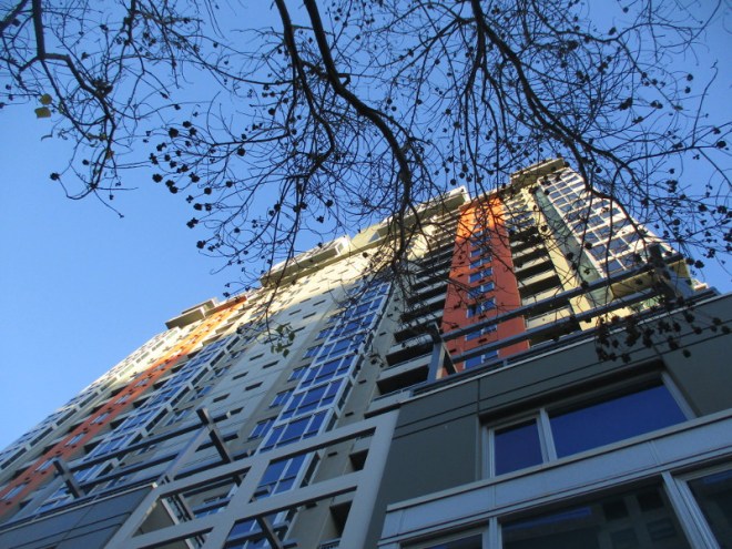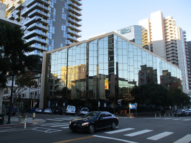 This morning, after walking down from the top of Cortez Hill, I headed west along Beech Street to catch the trolley at the Little Italy station.