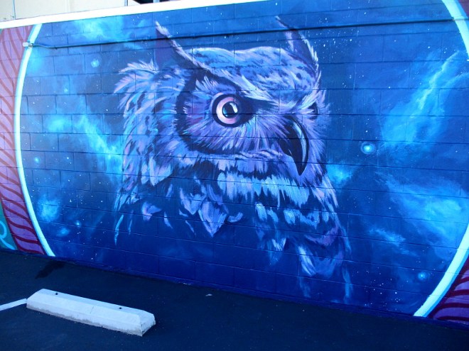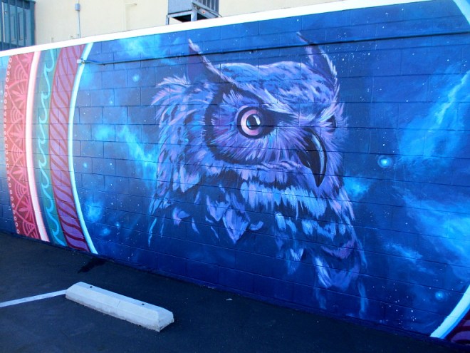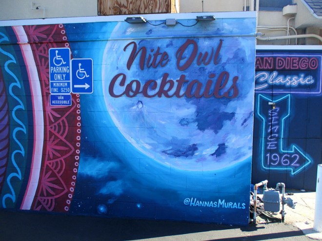 I briefly spoke to Hanna perhaps a year ago when she was doing some painting at the entrance to a La Jolla office. I asked what her favorite creation was. She specifically mentioned the Nite Owl mural.
