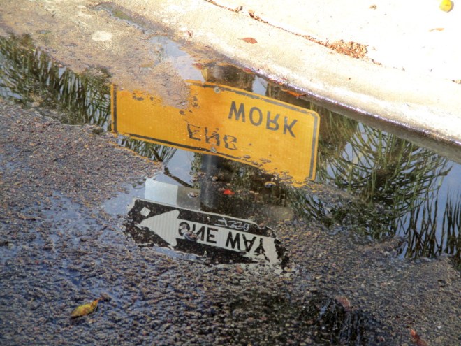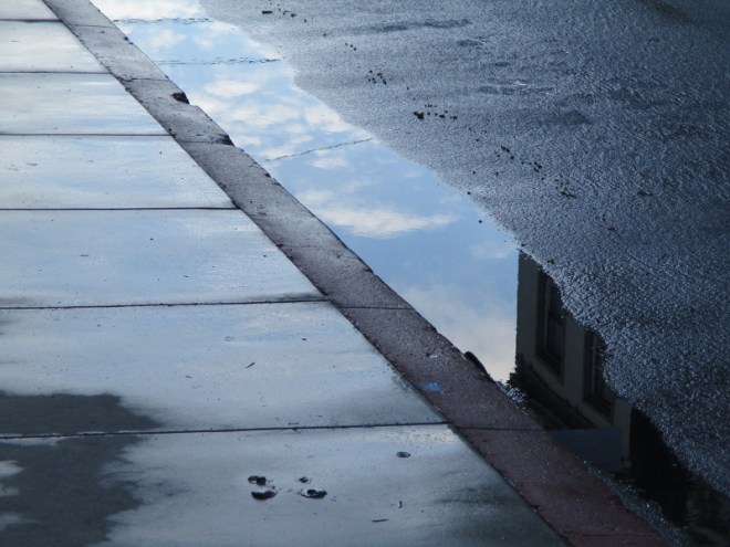 This morning I walked from Cortez Hill to Golden Hill and back. As I moved through downtown, I noticed interesting reflections in the sidewalk puddles.