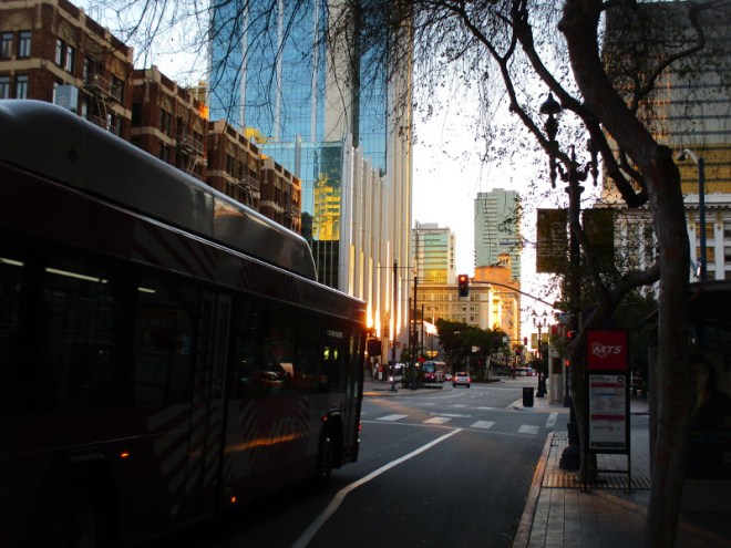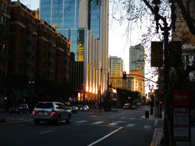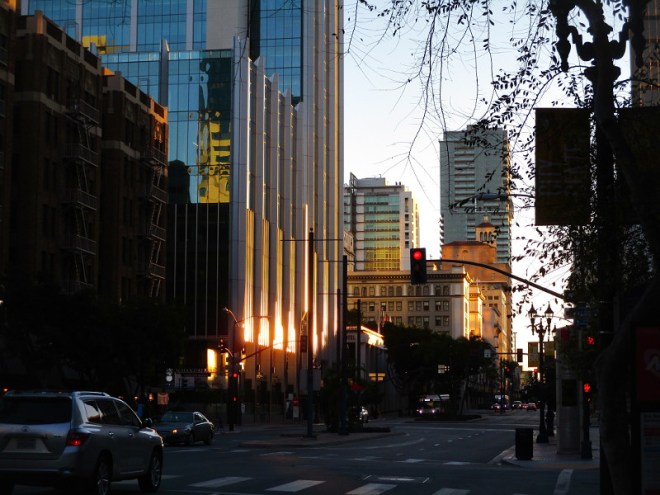 I captured these photographs this morning as the sun was rising. I stood in downtown San Diego, at one magical spot on Broadway.