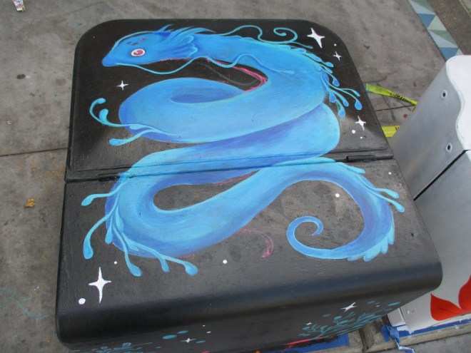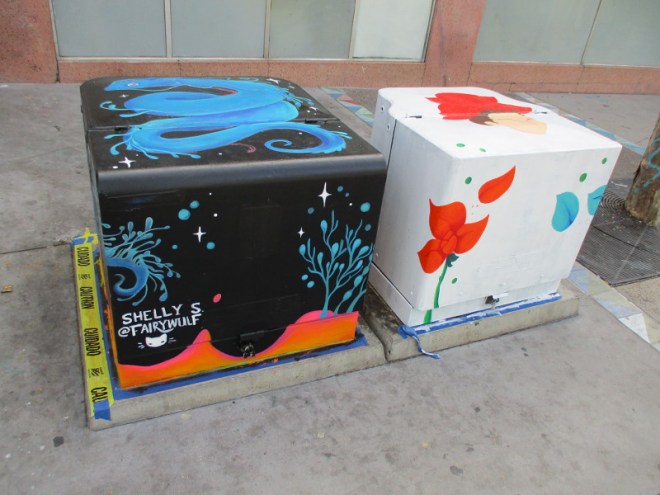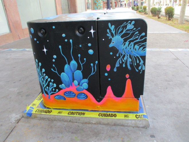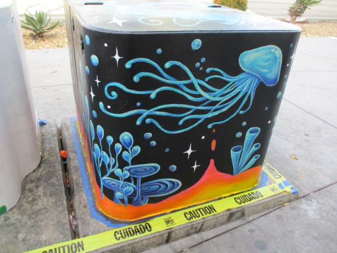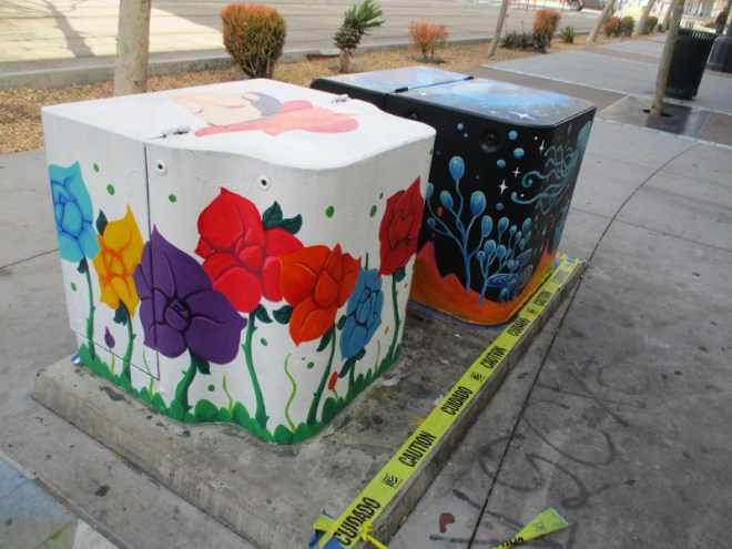 This morning I spotted five more utility boxes that are being painted for the San Diego Museum of Art’s project Young Art: Outside the Frame!