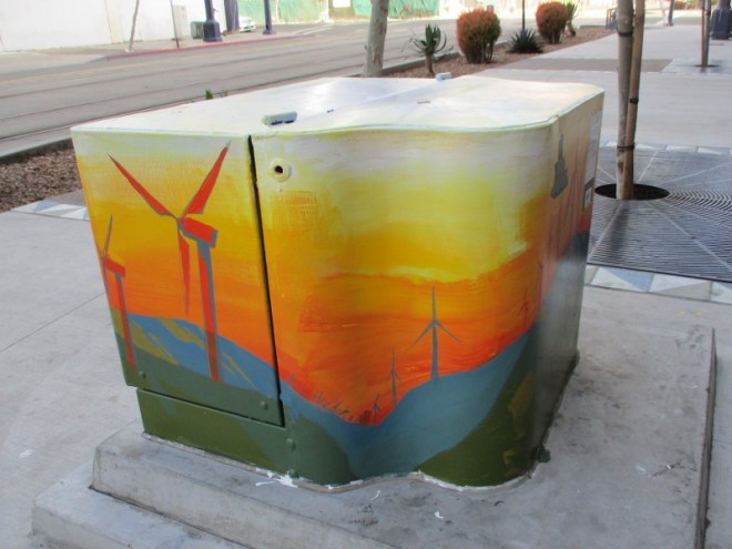 These five boxes are all in downtown San Diego’s East Village neighborhood, along Park Boulevard between E Street and Market Street. Other boxes I’ve previously spotted are also along Park Boulevard, but to the north. To see those colorful utility boxes, click here and here and here!