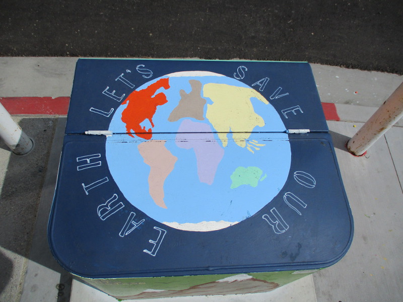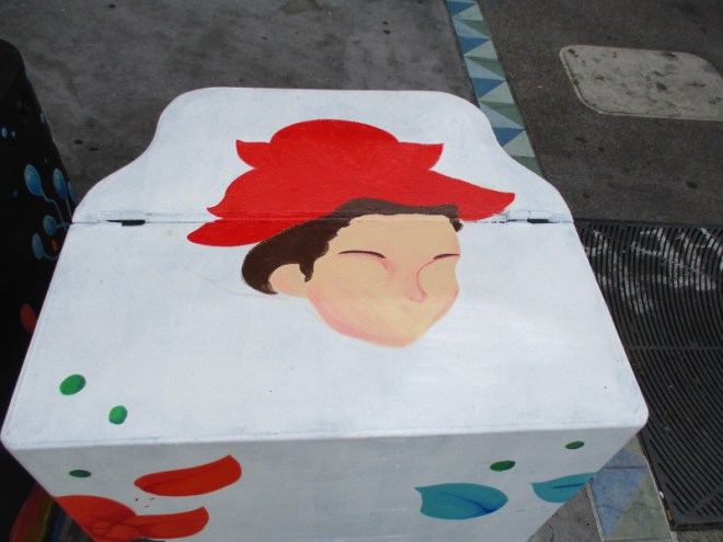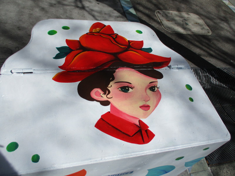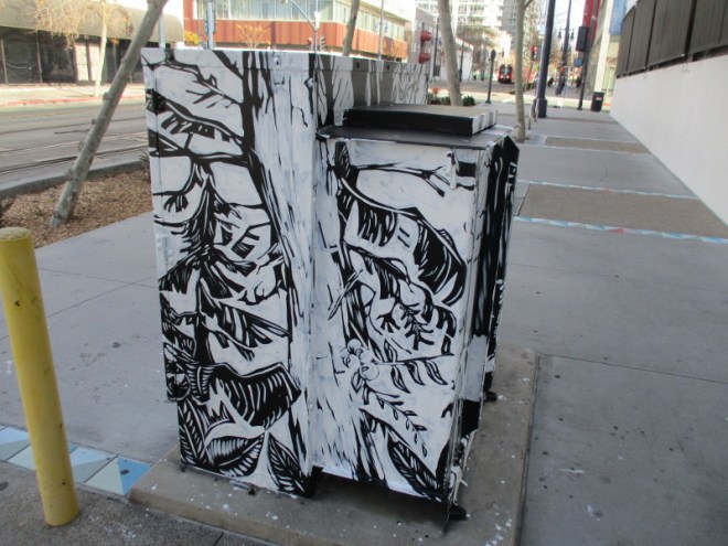 (The upcoming photo is of a mural directly across Park Boulevard from the above box. It’s titled The Strength of the Women. It was painted by renowned artist Rafael Lopez years ago. I blogged about it in 2014. You can see those photos here.)