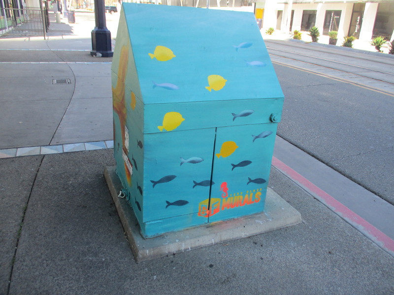 As you can see in the next photo, the fun goldfish box was painted by Ground Floor Murals. They also created a super cool mural in City Heights celebrating Tony Gwynn. See that here!