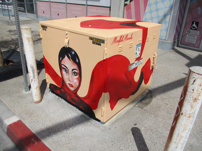 And a week or so later I took more photos! I now see the box with the words YOU ARE MAGIC is by artist Amanda Lopez (@amanda.makes.art). The box with the whale in the clouds is by Tory Brooke Marshall (@afrothynothing). And the face with flowing red scarf is by Mindful Murals!