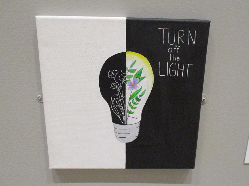 The professional artists painting the boxes were encouraged to interpret the student canvases in their own unique way. You can see significant differences. (And painting an outdoor utility box that will be seen momentarily by passing motorists and pedestrians is very different than painting a canvas with a fine brush.)