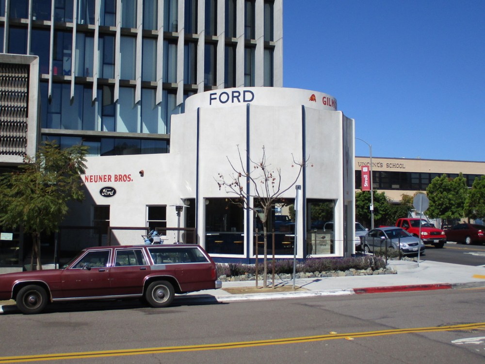 The unique, cylindrical, Streamline Moderne-style Ford Building in Balboa Park, which resembles a V8 engine, was erected by the Ford Motor Company for the 1935 California Pacific International Exposition.