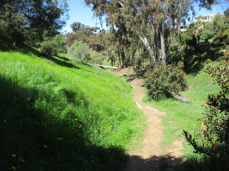I started inside Hillcrest, headed west down Washington Street, took a momentary detour to Fort Stockton Drive, then headed back down Washington Place to historic (and some say haunted) Pioneer Park, which I will blog about in a day or two. I then hiked down sloping Mission Hills Canyon along the green, seemingly little known Robyn’s Egg Trail, which I also plan to blog about. Eventually I came out near San Diego Avenue, southeast of Old Town.