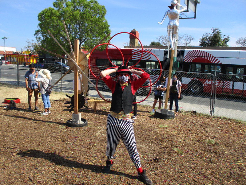 Everyone enjoyed food and live music, and there was juggling and stilt-walking by a member of the Fern Street Circus. After a little while various community leaders spoke, including local artist Jim Bliesner, the curator of Characters.